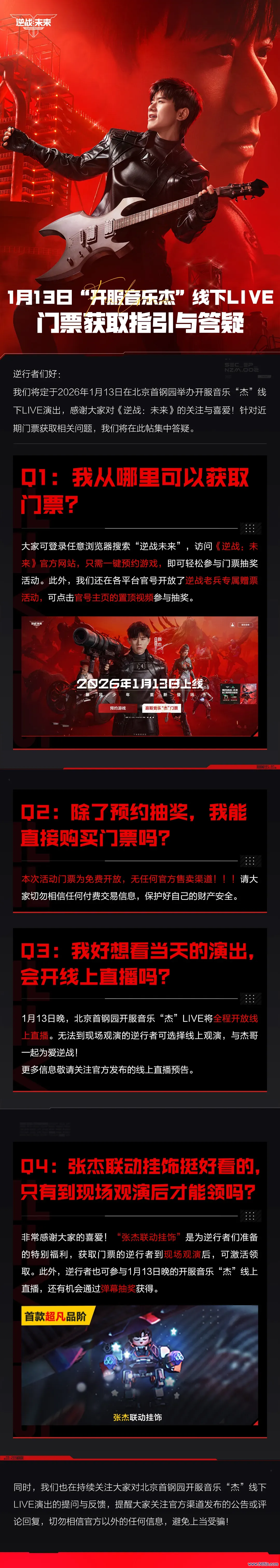 《逆战:改日》1月13日开服音乐“杰”线下LIVE门票赢得素养与答疑